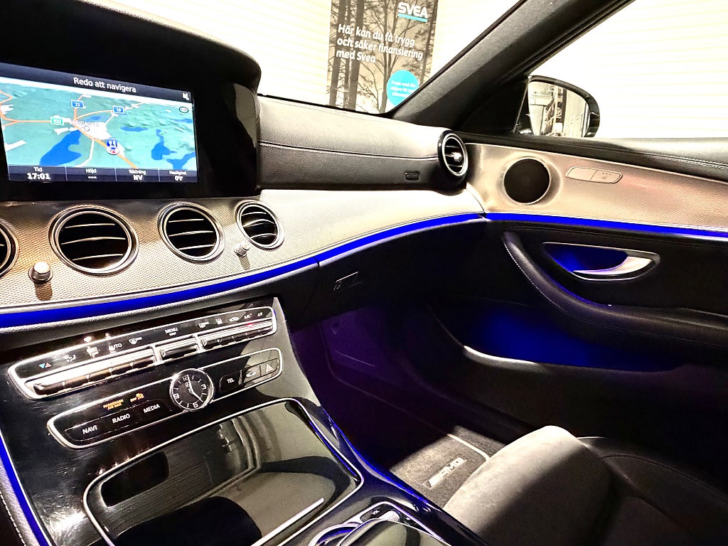 Denna bil är utrustad med parkeringsvärmare med fjärrkontroll, 360° backkamera, GPS-navigation, AMG-styling, svart innertak, interiört belysningspaket med panelbelysning, säteskomfortpaket, aktiv parkeringsassistent inkl. Parktronic, växelpaddlar, samt adaptiva LED-strålkastare med Intelligent Light System (ILS).